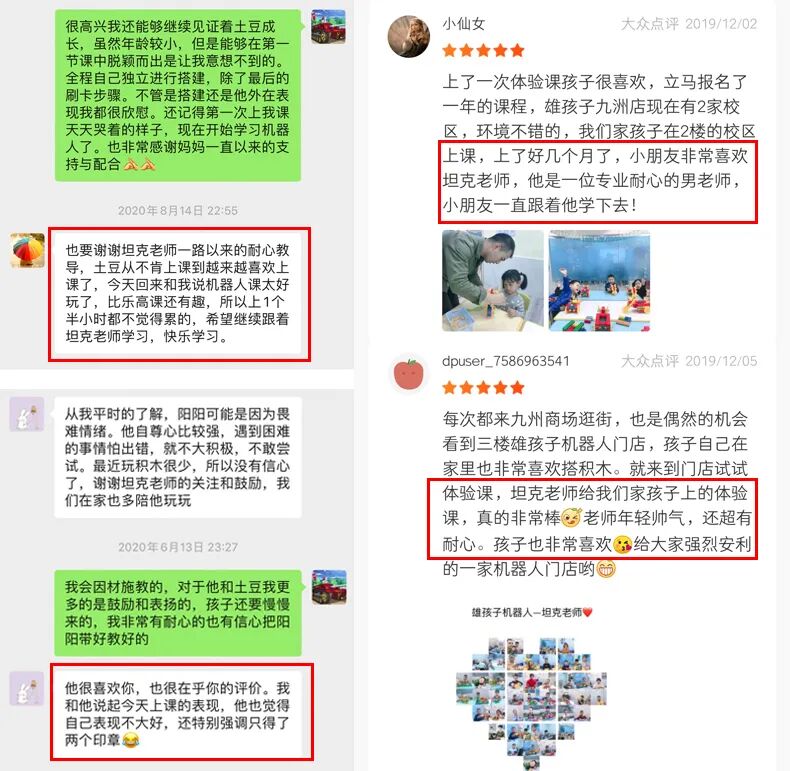 这个方法坦克老师教学以来一直保留着。他对课堂的把控能力,对孩子的悉心照顾,对家长的极致负责,对自身的严以律己,获得了家长们的一致认可。