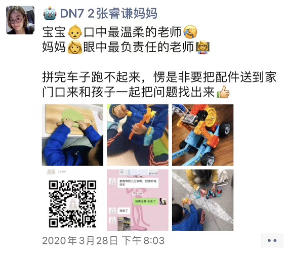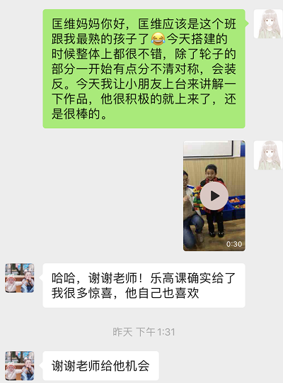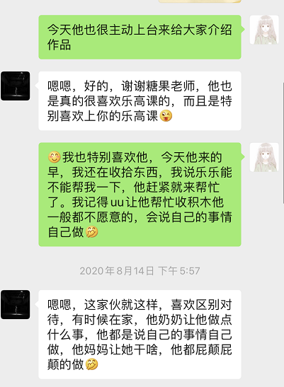 很多小朋友特别好动,当然也很难坐下来安静的搭建乐高。这时候糖果老师会用情景导入的方式,通过有趣的作品吸引孩子的注意力,慢慢融入课堂的氛围。经过一段时间,能在教室上完 整堂课并积极举手发言。