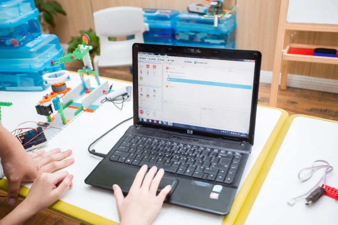 本阶段课程升级了主板的性能,增加了搭建和编程的难度,接触到更多的传感器和电子元件。电脑图形模块化的编程,让孩子初步见识到了利用电脑来学习的乐趣与意义。
