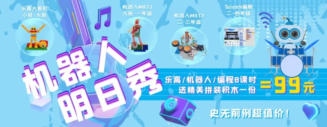 快抢一波99元机器人明日秀主题课程,来亲手创造你的专属机器人C位出道吧~